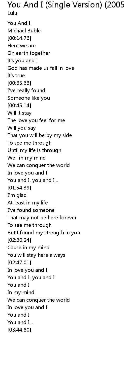 You And I (Single Version) (2005 Digital Remaster) Lyrics