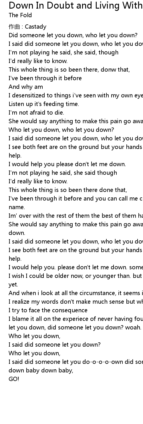 | I said did someone let you do-o-o-o-own did someone let you down? who let you down baby down baby, | |
