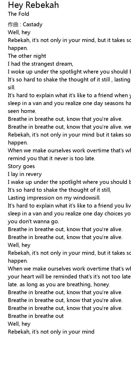 | Breathe in breathe out, know that you' re alive. well, hey | |