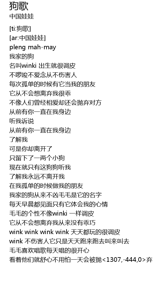 | [00:50.343] | 名叫winki 出生就很调皮 |