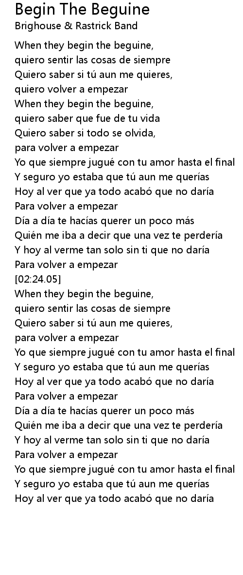 | [02:37.24] | When they begin the beguine, |