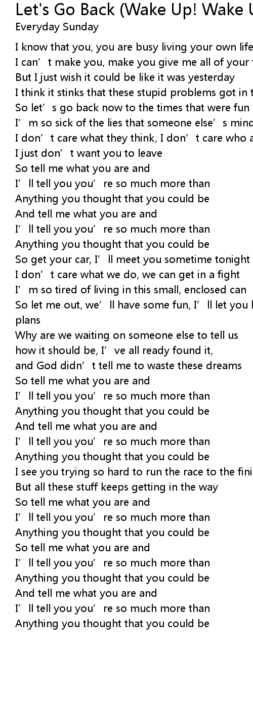 | Song | Let's Go Back (Wake Up! Wake Up! Album Version) |