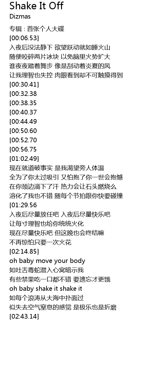 | [01:49.44][00:50.60] | oh baby shake it shake it |
