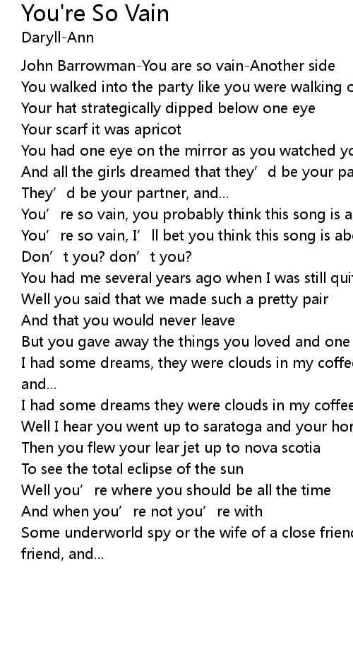 | [00:59.68] | You' re so vain, I' ll bet you think this song is about you |