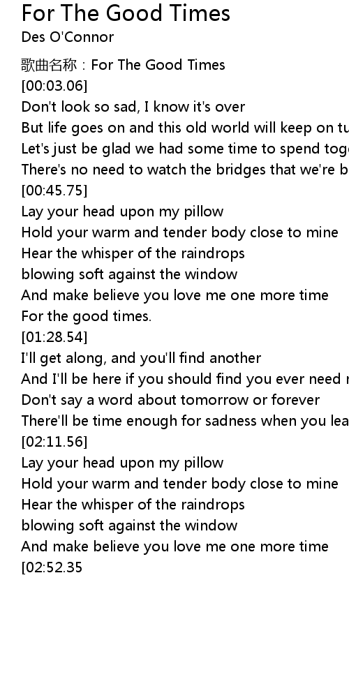 | [00:00.66] | 歌曲名称:For The Good Times |