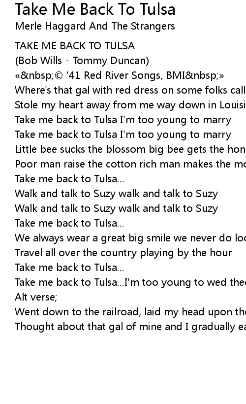 | Take me back to Tulsa I'm too young to marry | |