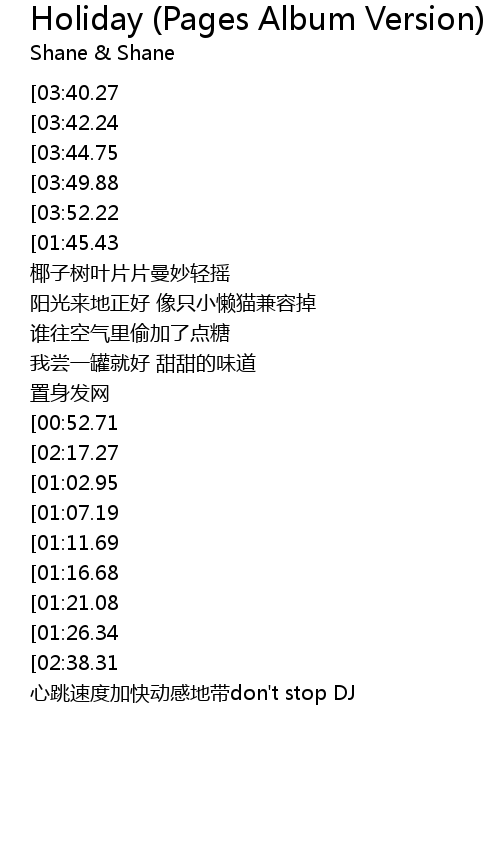 | [03:27.75][02:38.31] | 心跳加快动感地带 Holiday |