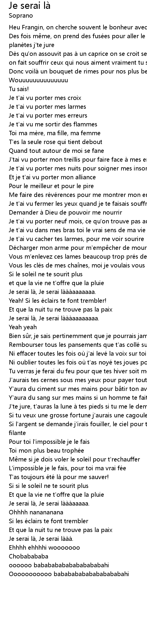 | Je serai la, Je serai laaa aaaaaaaa. | |