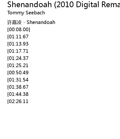 | [00:02.00] | 许嘉凌 - Shenandoah |
