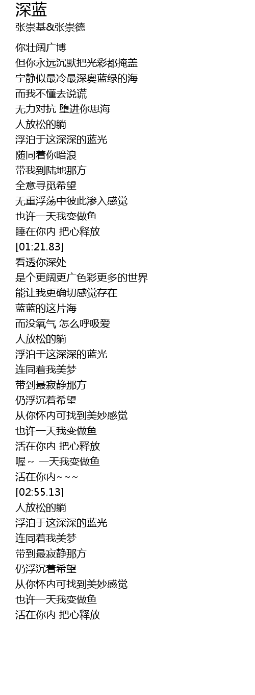 | [00:52.01] | 浮泊于这深深的蓝光 |