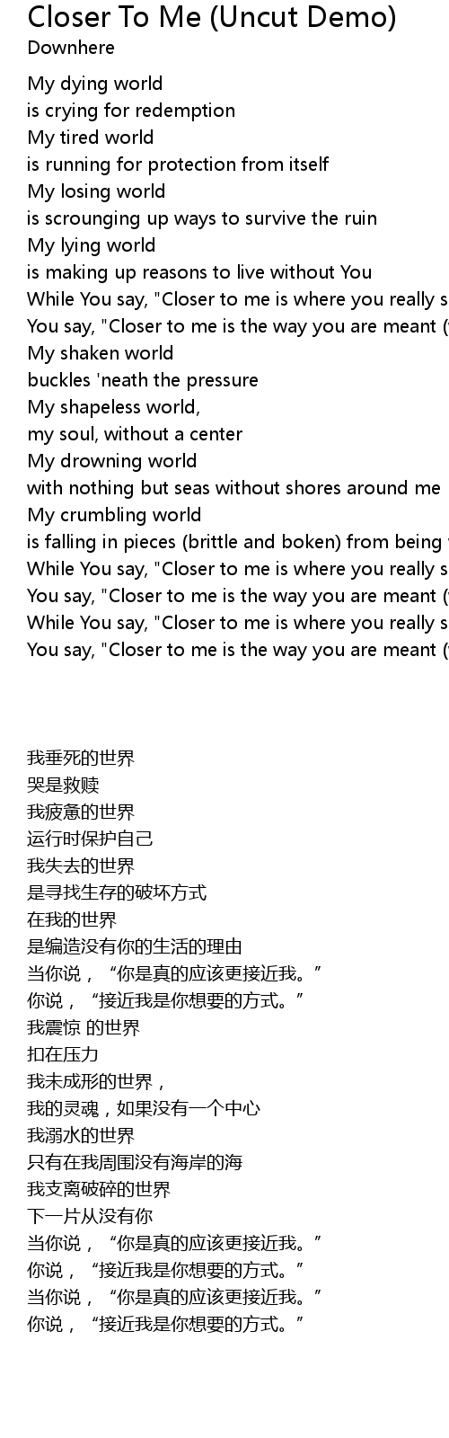 While You say, "Closer to me is where you really should be." |