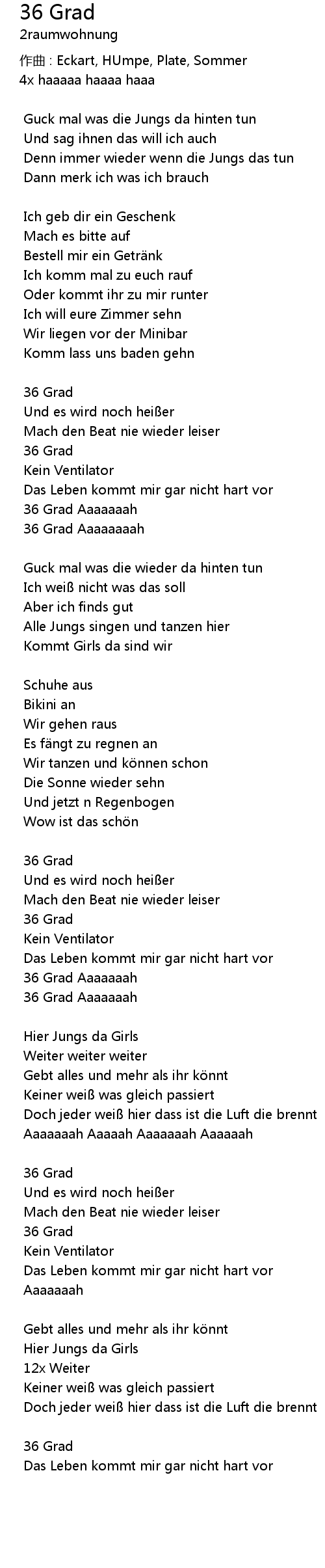 | Song | 36 Grad |