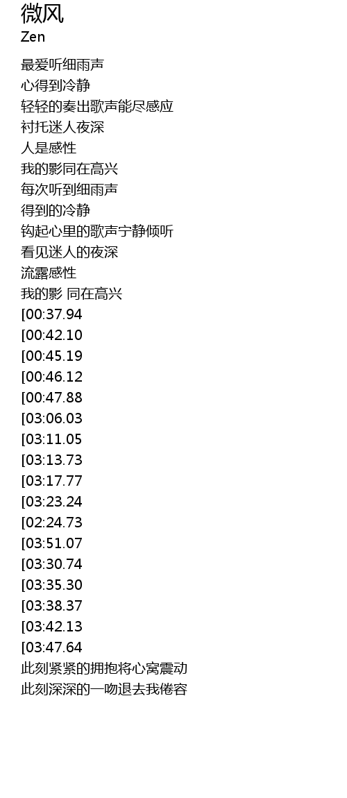 | [03:54.84][03:06.03][02:04.25][00:50.66] | 微风 请把她感动 |
