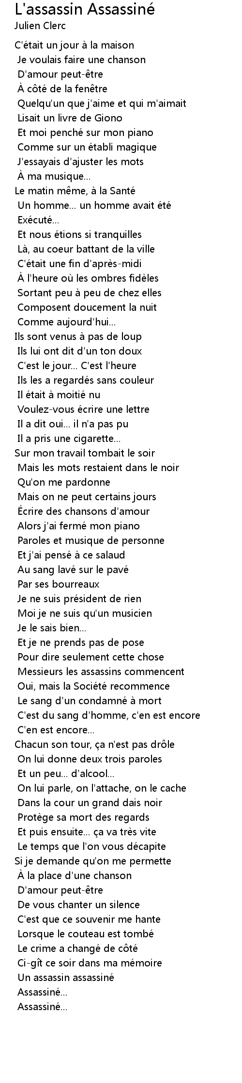 | Song | L'assassin Assassiné |