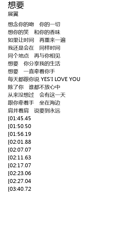 | [03:13.07][02:07.07] | 想要 你在我身边 |