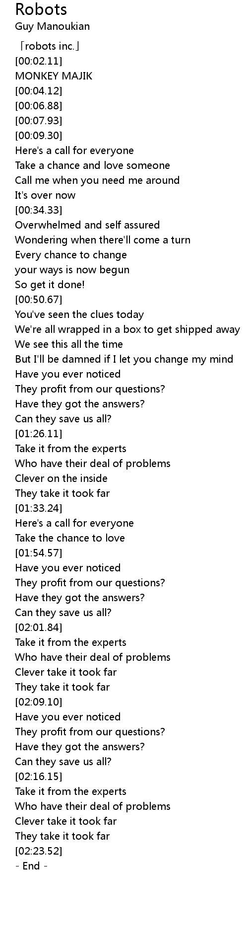 | [01:09.01] | We' re all wrapped in a box to get shipped away |