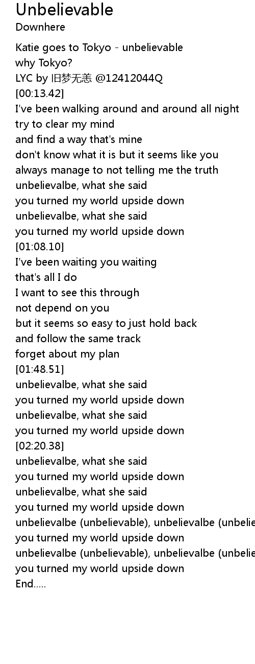 | [03:18.48] | unbelievalbe (unbelievable), unbelievalbe (unbelievable) |