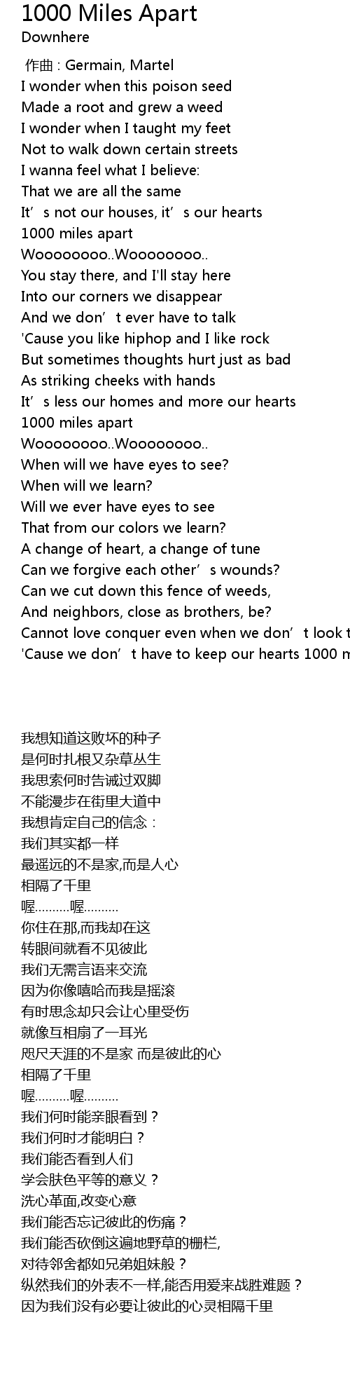 | [02:38.250] | 'Cause we don’t have to keep our hearts 1000 miles apart |