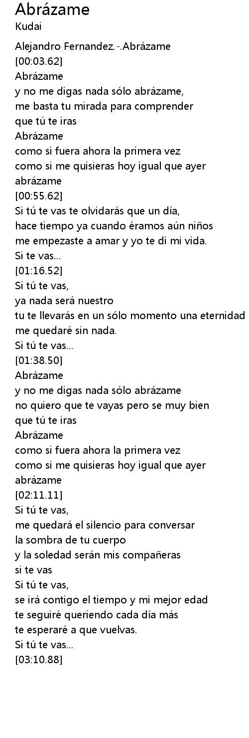 | [00:01.06] | Alejandro Fernandez. . Abra zame |