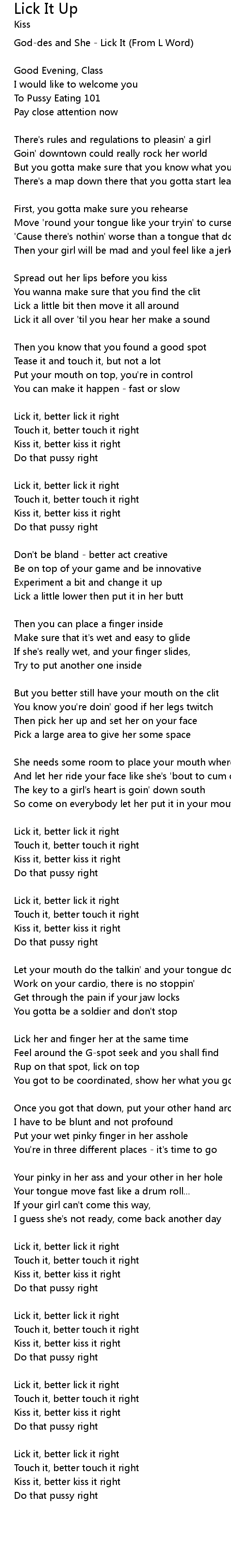 | Let your mouth do the talkin' and your tongue do the walkin' | |