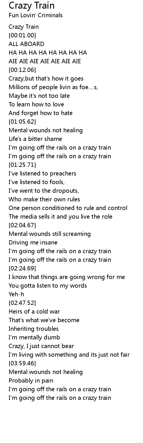 I'm going off the rails on a crazy train |