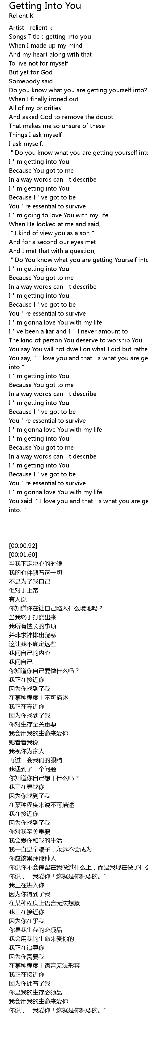 | [01:34.87] | Do You know what you are getting Yourself into? |