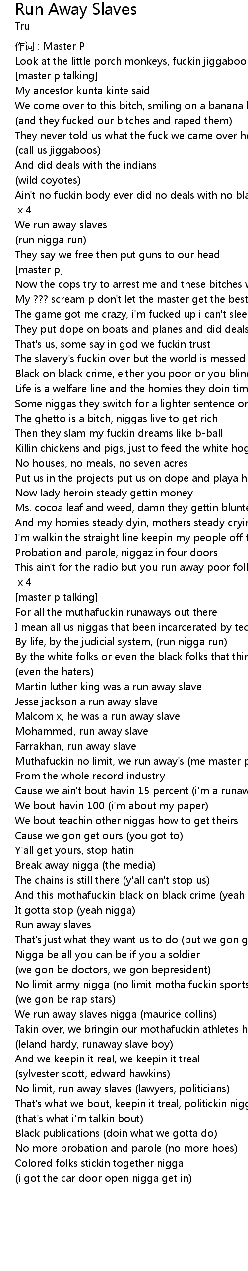 | Cause we ain' t bout havin 15 percent i' m a runaway nigga | |