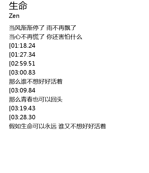 | [04:25.18] | 假如生命可以永远 谁又不想好好活着 |