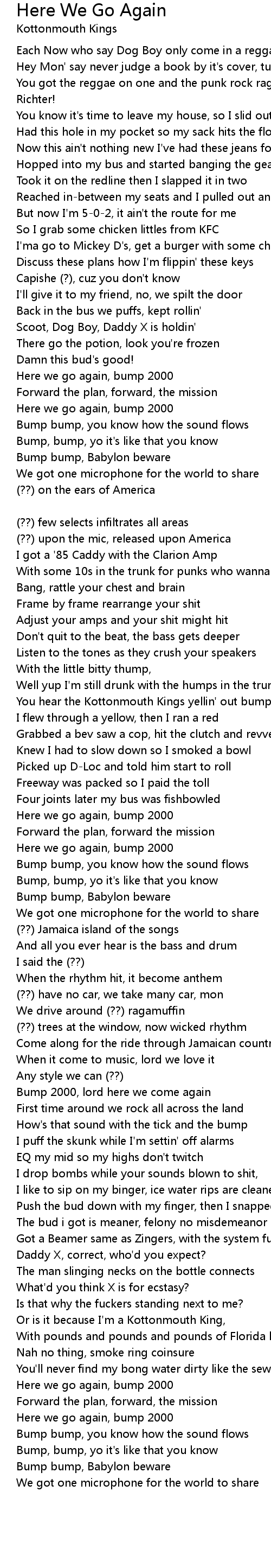 You hear the Kottonmouth Kings yellin' out bump bump |