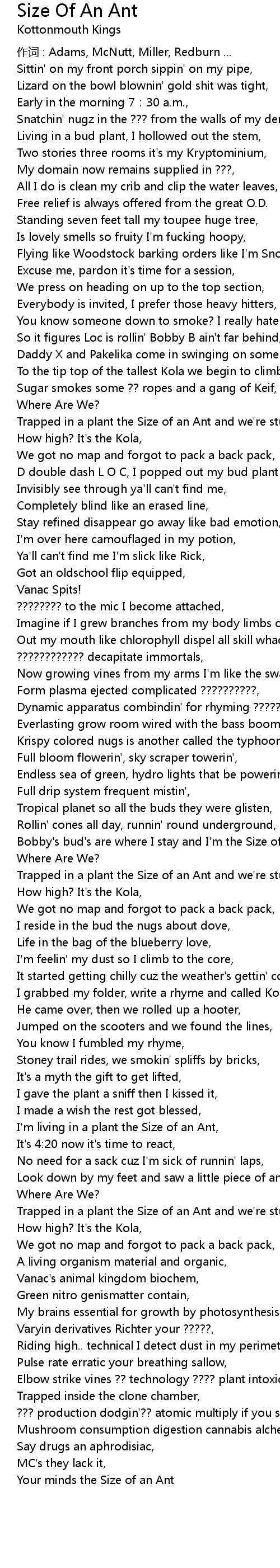 | Bobby' s bud' s are where I stay and I' m the Size of an Ant, | |