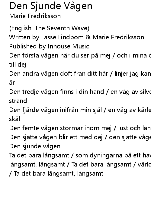 | Den femte vågen stormar inom mej / lust och längtan kräver mer av dej | |