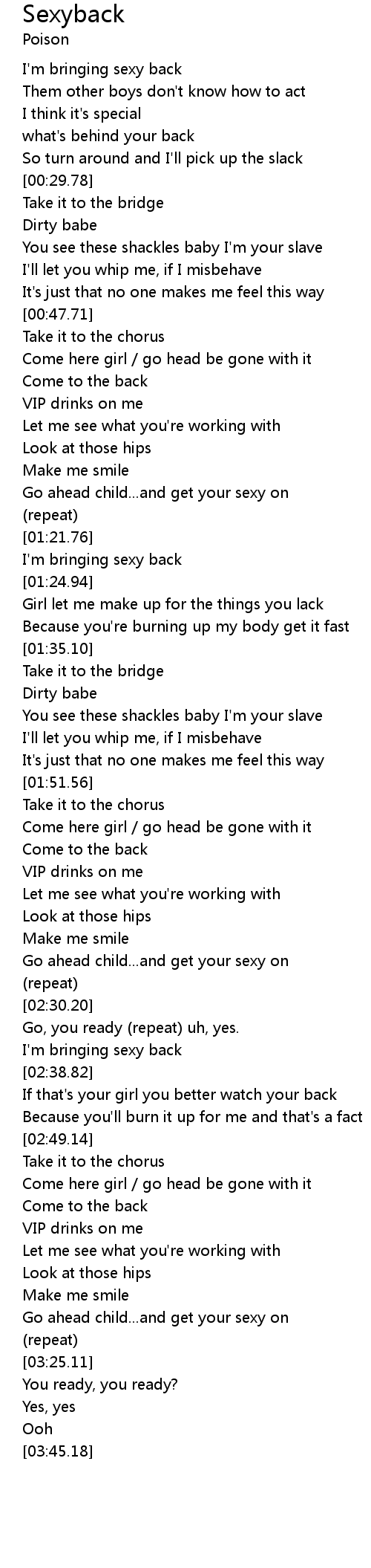 | [00:16.50] | I'm bringing sexy back |