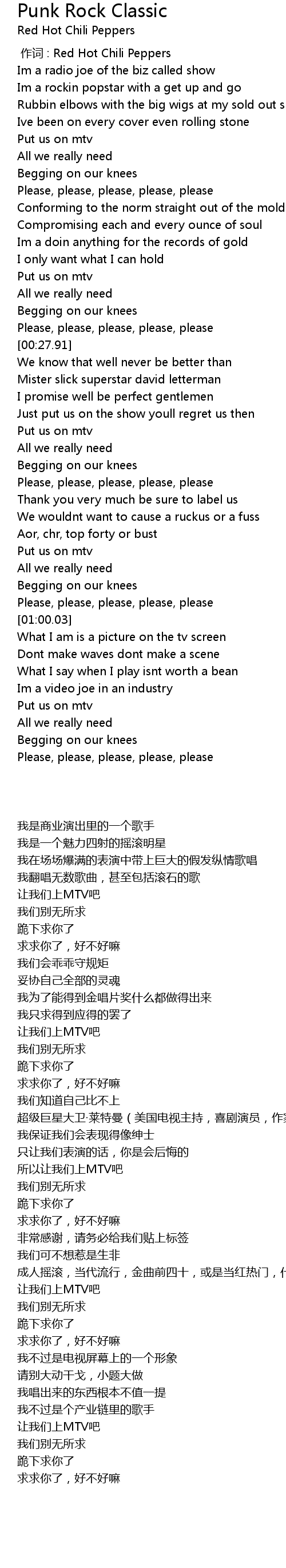 | [00:00.00] | 作词 : Red Hot Chili Peppers |