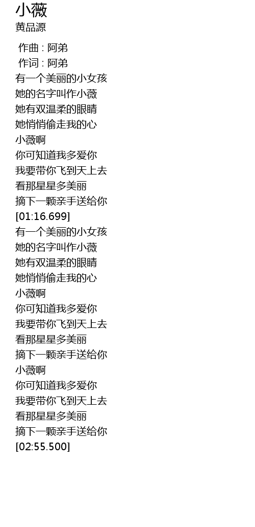 | [00:33.749] | 她的名字叫作小薇 |