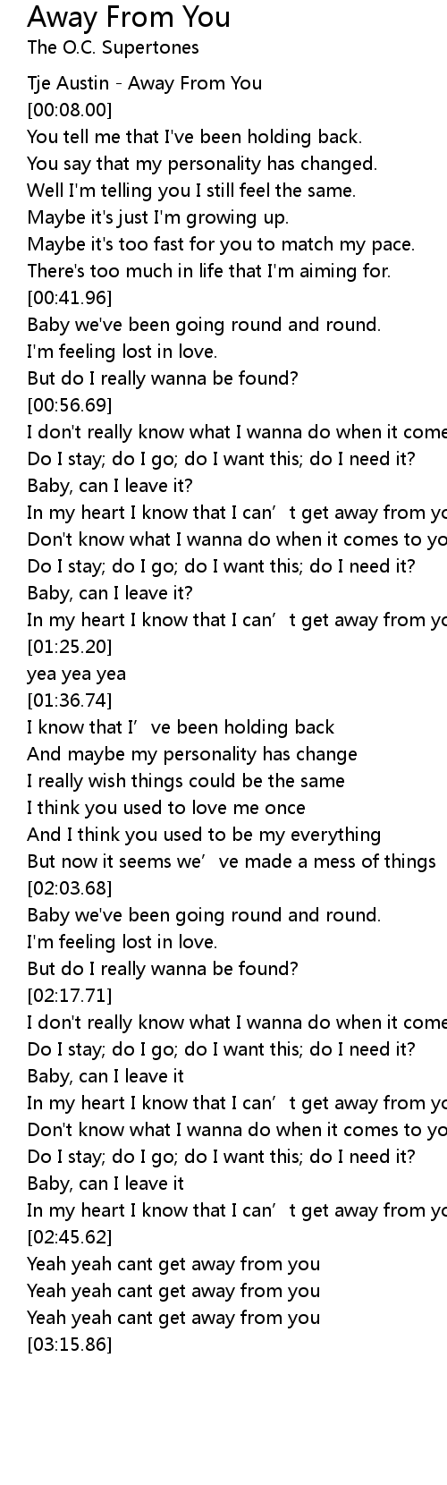 | [02:42.28] | In my heart I know that I can' t get away from you |