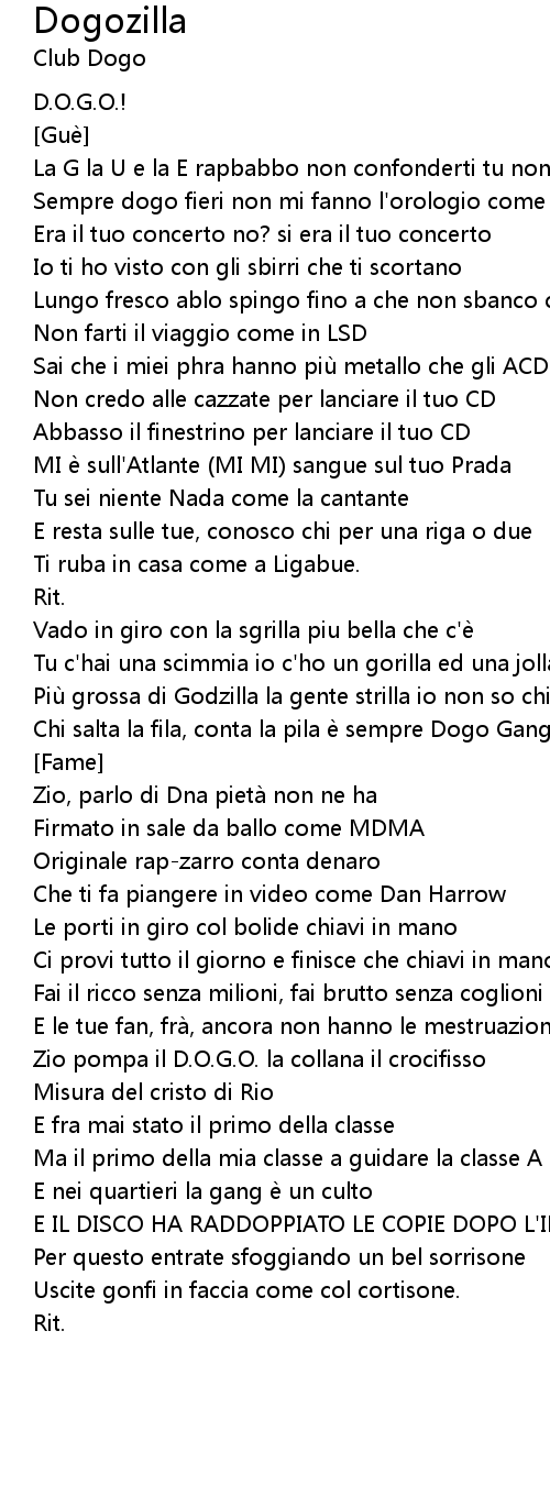 | Più grossa di Godzilla la gente strilla io non so chi sei te | |