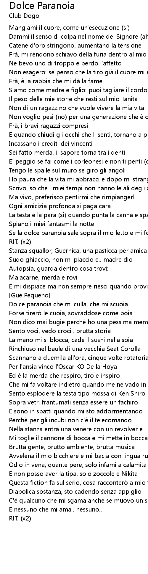 | Dolce paranoia che mi culla, che mi scuoia | |