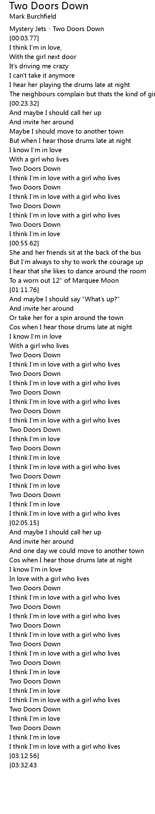 Mystery Jets - Two Doors Down |