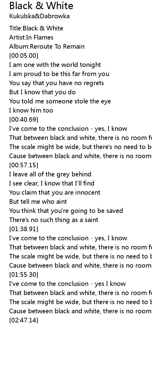 Cause between black and white, there is no room for two |