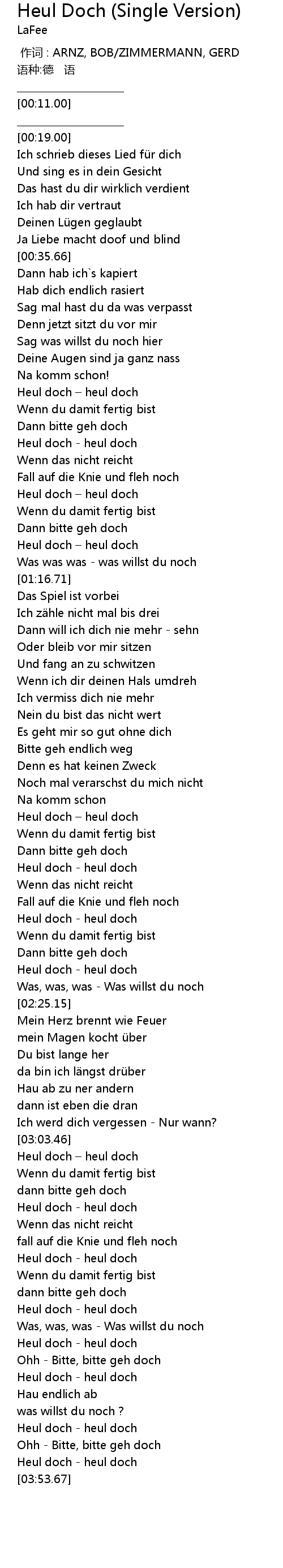 | [00:58.37] | Heul doch heul doch |