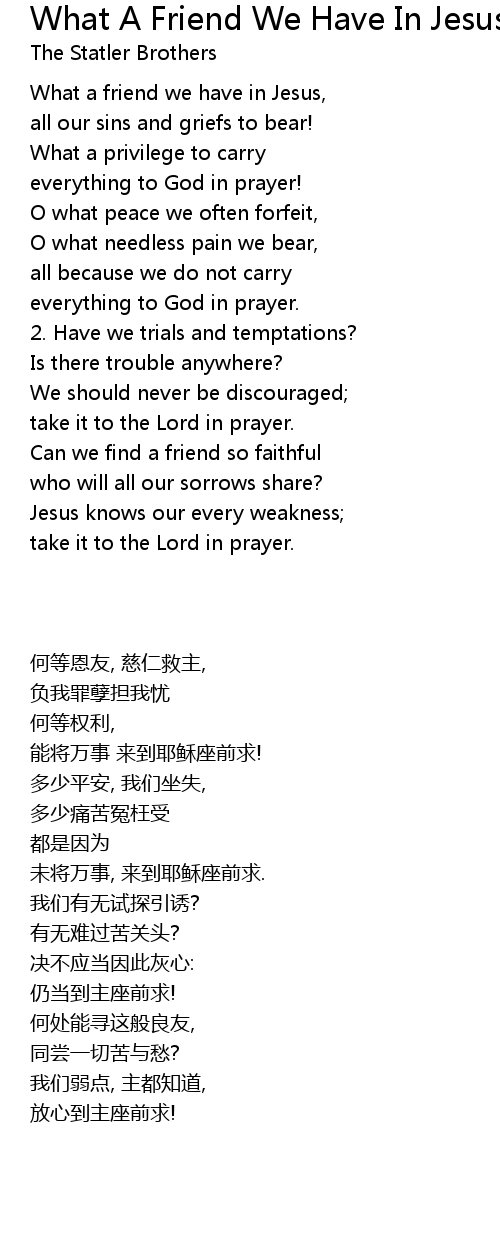 What a friend we have in Jesus, |