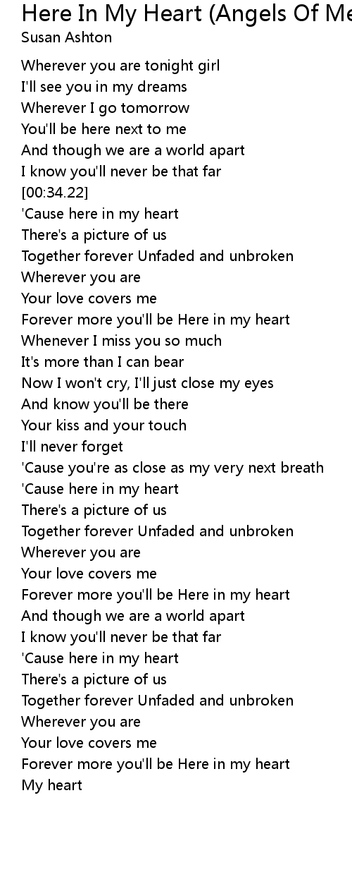 Here In My Heart (Angels Of Mercy Album Version) Lyrics