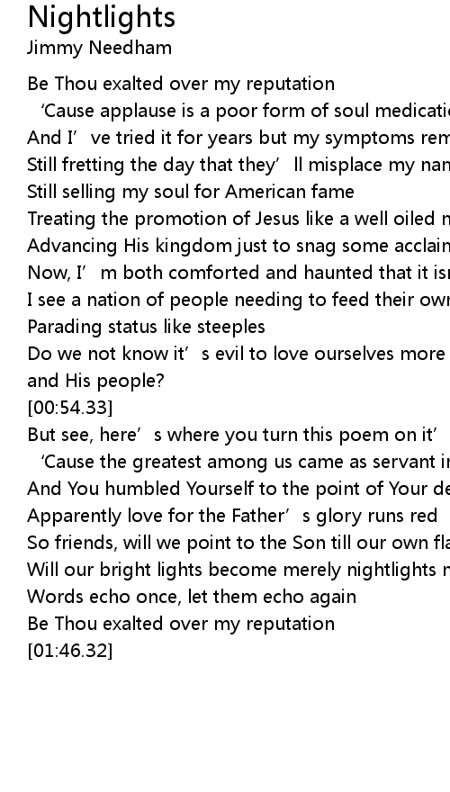 | [01:29.74] | Will our bright lights become merely nightlights near Him? |