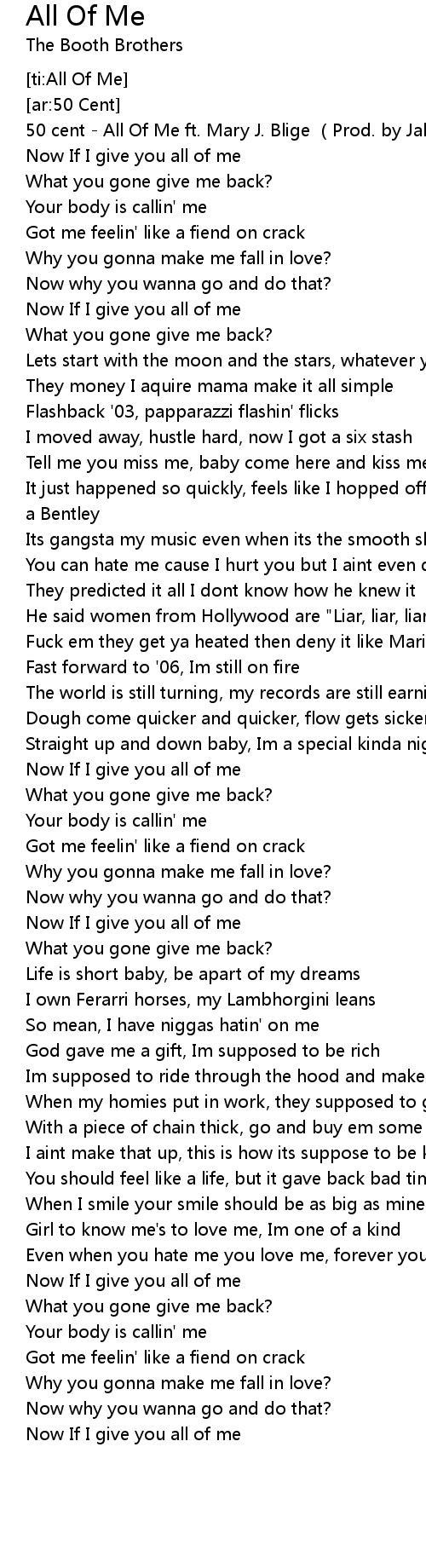 | [00:01.33] | 50 cent - All Of Me ft. Mary J. Blige (Prod. by Jake One) |