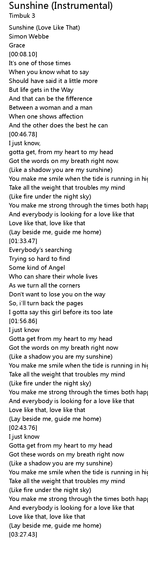 Sunshine (Love Like That) |