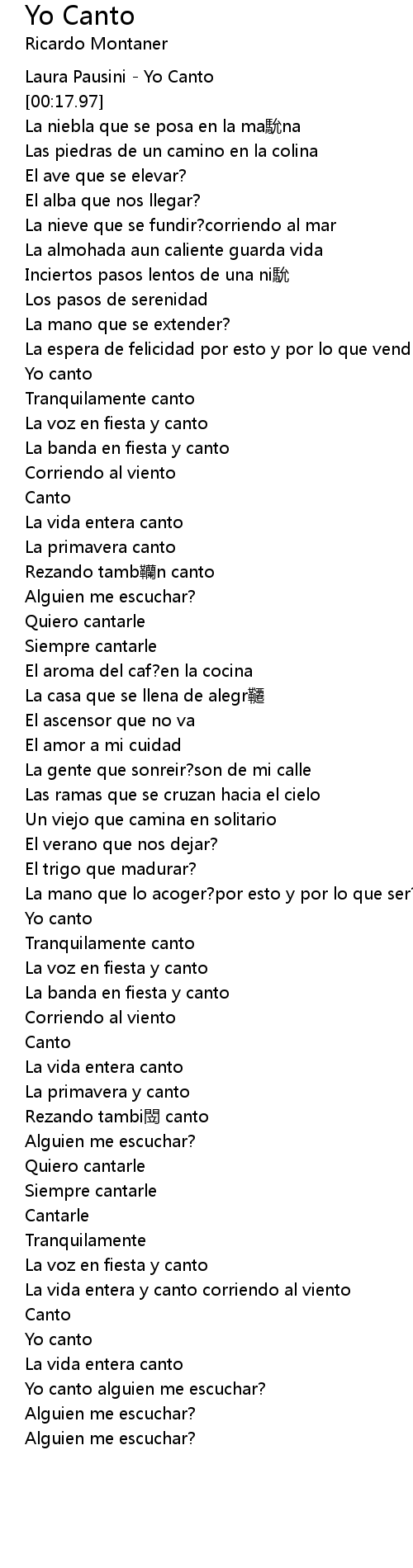 | [03:36.78] | Yo canto alguien me escuchar? |