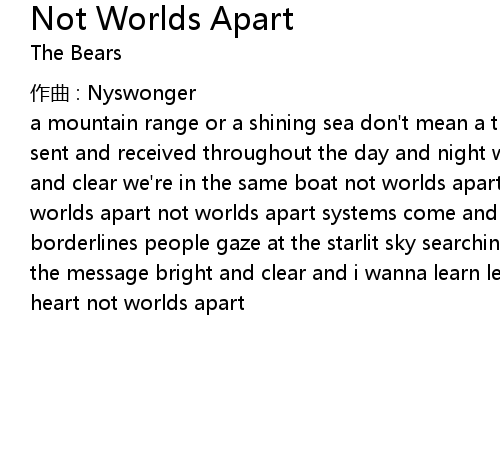 | Song | Not Worlds Apart |