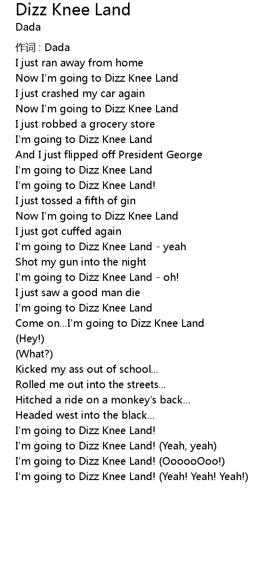 | I' m going to Dizz Knee Land yeah | |