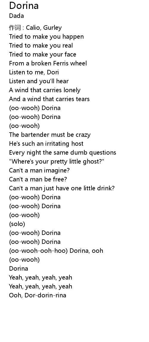 | (oo-wooh-ooh-hoo) Dorina, ooh | |