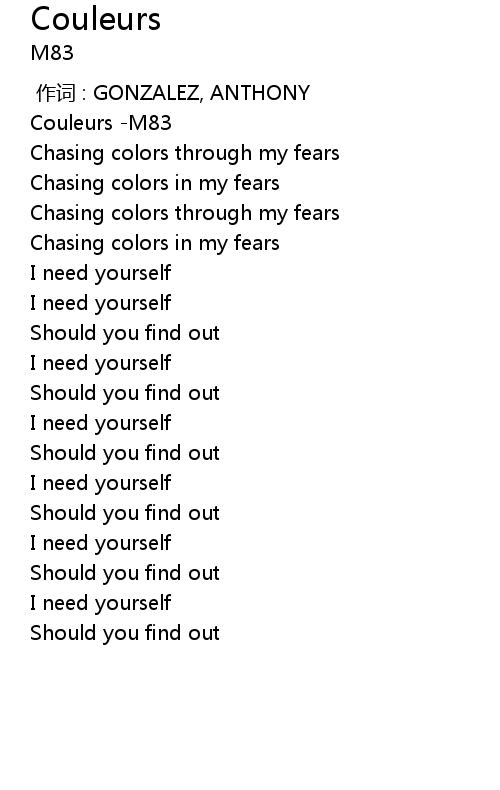 | [00:00.000] | 作词 : GONZALEZ, ANTHONY |